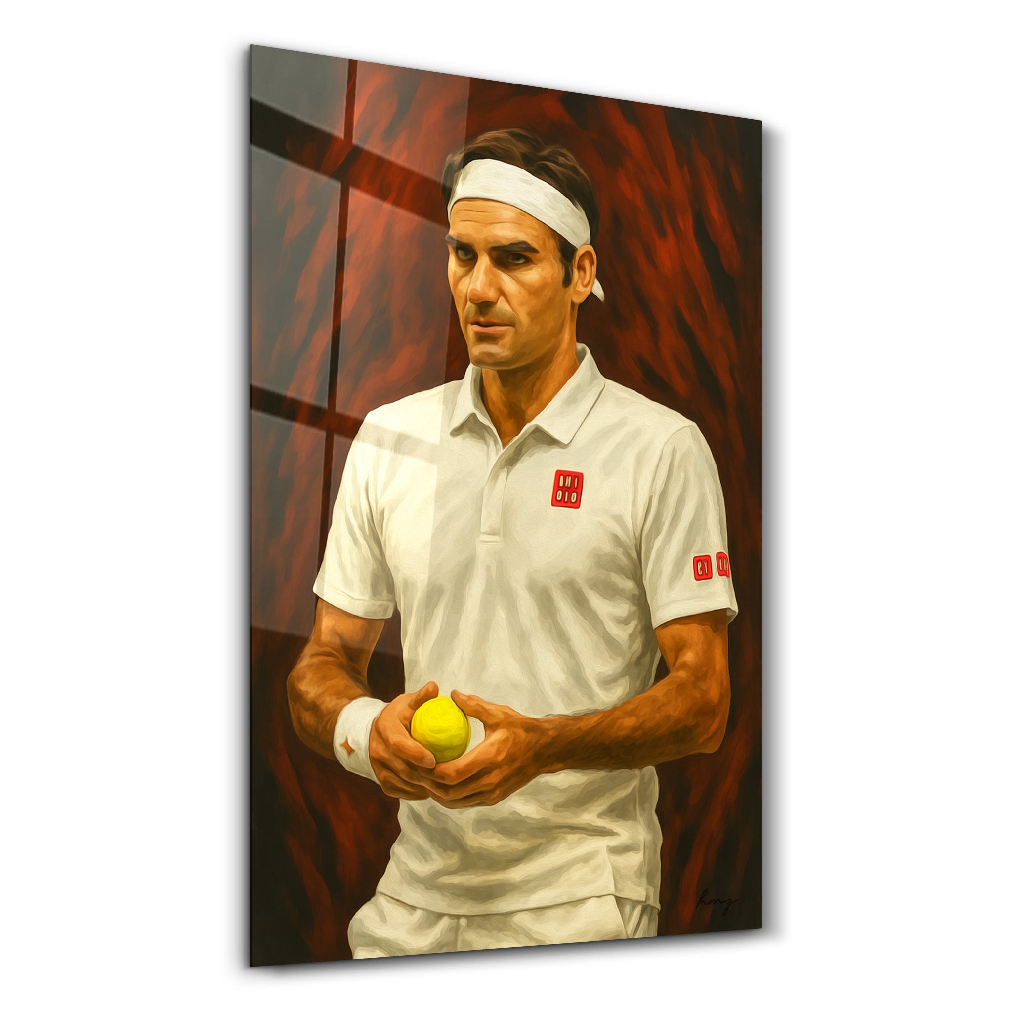The Elegance pays homage to the quiet precision and timeless class of one of tennis’s all-time greats. Captured in a moment of serene focus, this portrait embodies discipline, grace, and the calm power that defined an era of greatness.