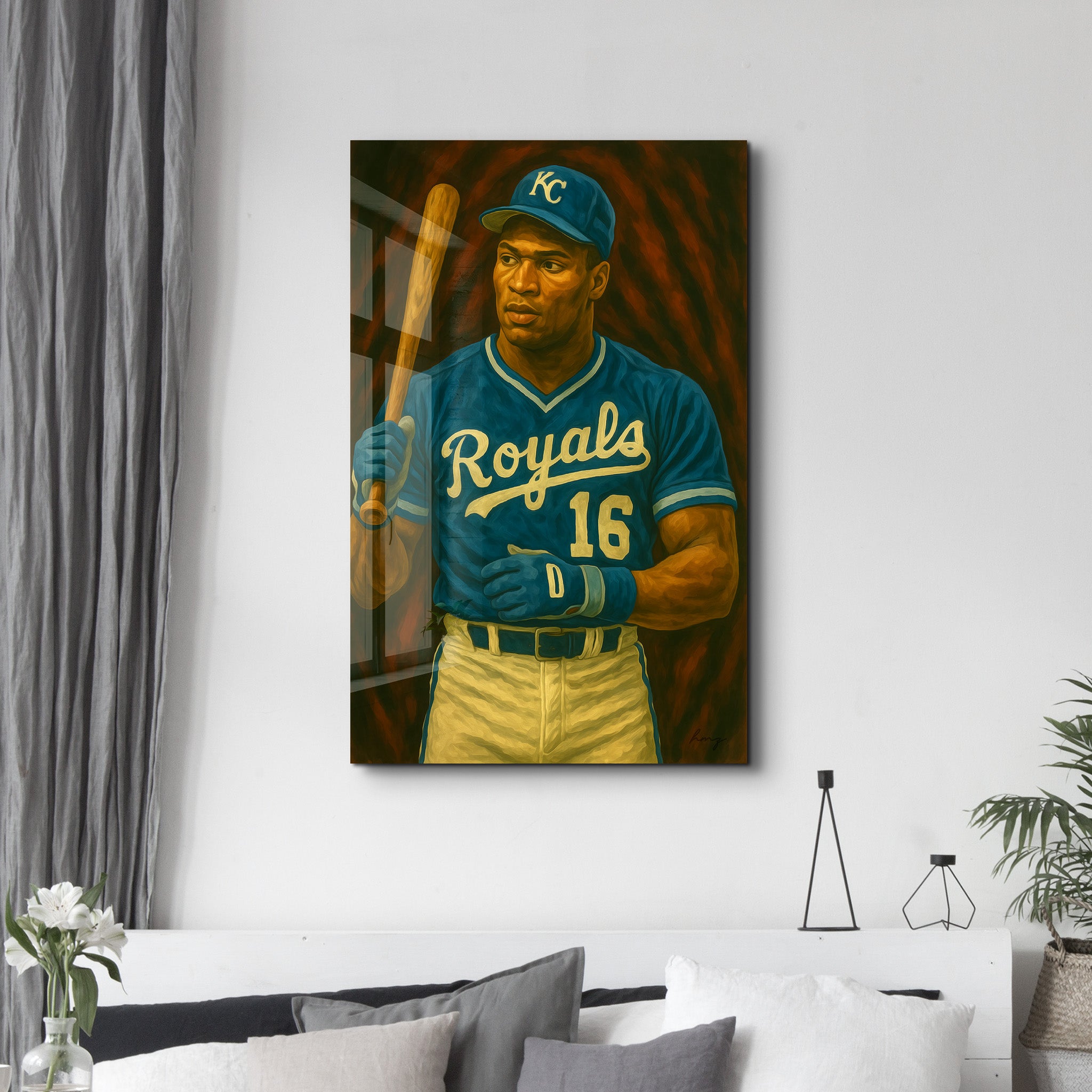 The Phenomenon honors a one-of-a-kind athlete whose explosive power, versatility, and dual-sport dominance made history. Captured mid-focus in his Royals uniform, this artwork reflects strength, discipline, and the rare greatness of an icon who redefined what the human body is capable of.