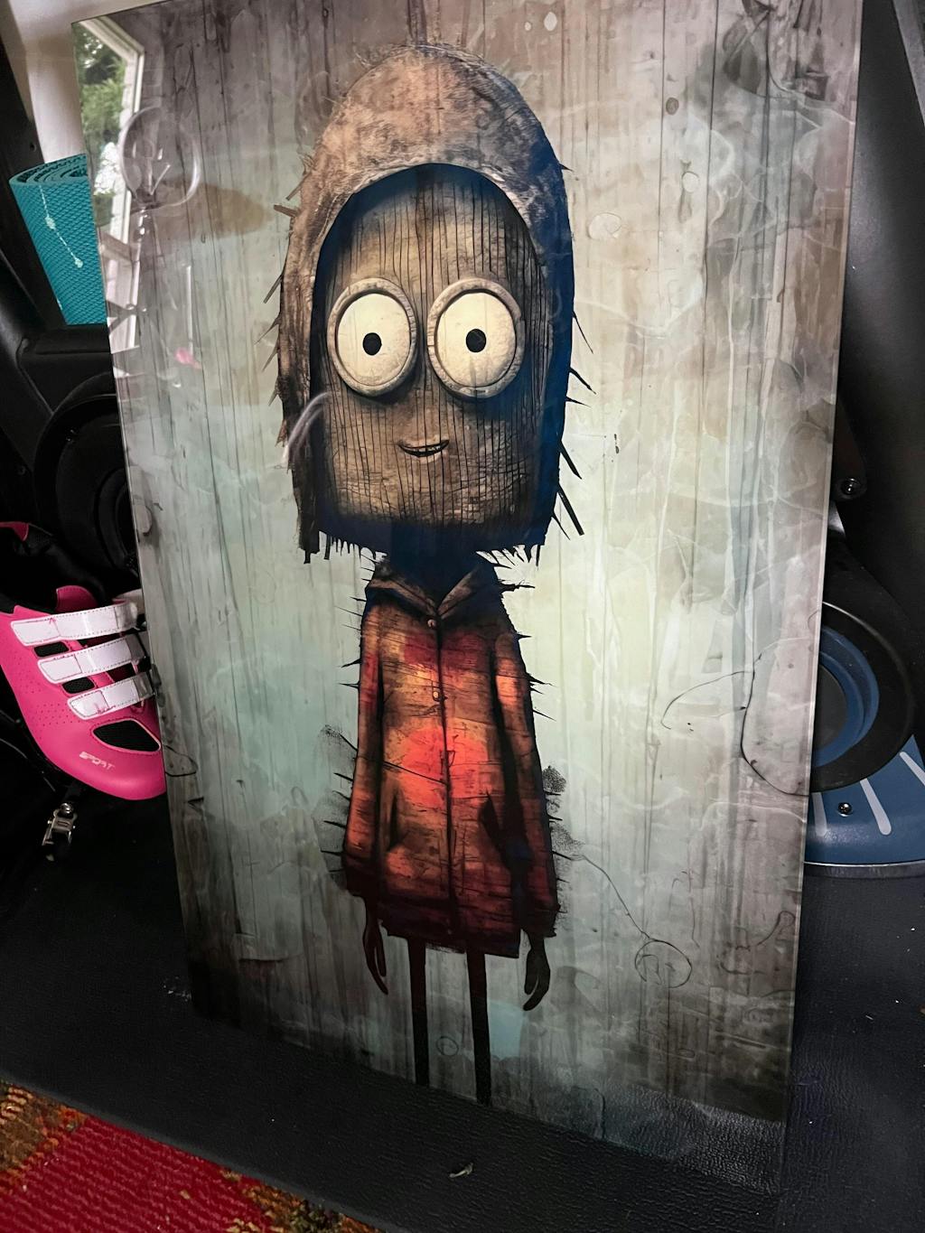 Here is an abstract character wall art, carrying a mood of quiet mystery and introspection to any space. Dressed in a worn, vibrant hoodie, stands still as if lost in thought yet full of marvel. The hushed background perfectly contrasts with the character's hopeful face, balancing the world's ruggedness and the brightness of inner pursuits. Can't you just feel the urge in those eyes, the enthusiasm to explore what lies beyond the present?