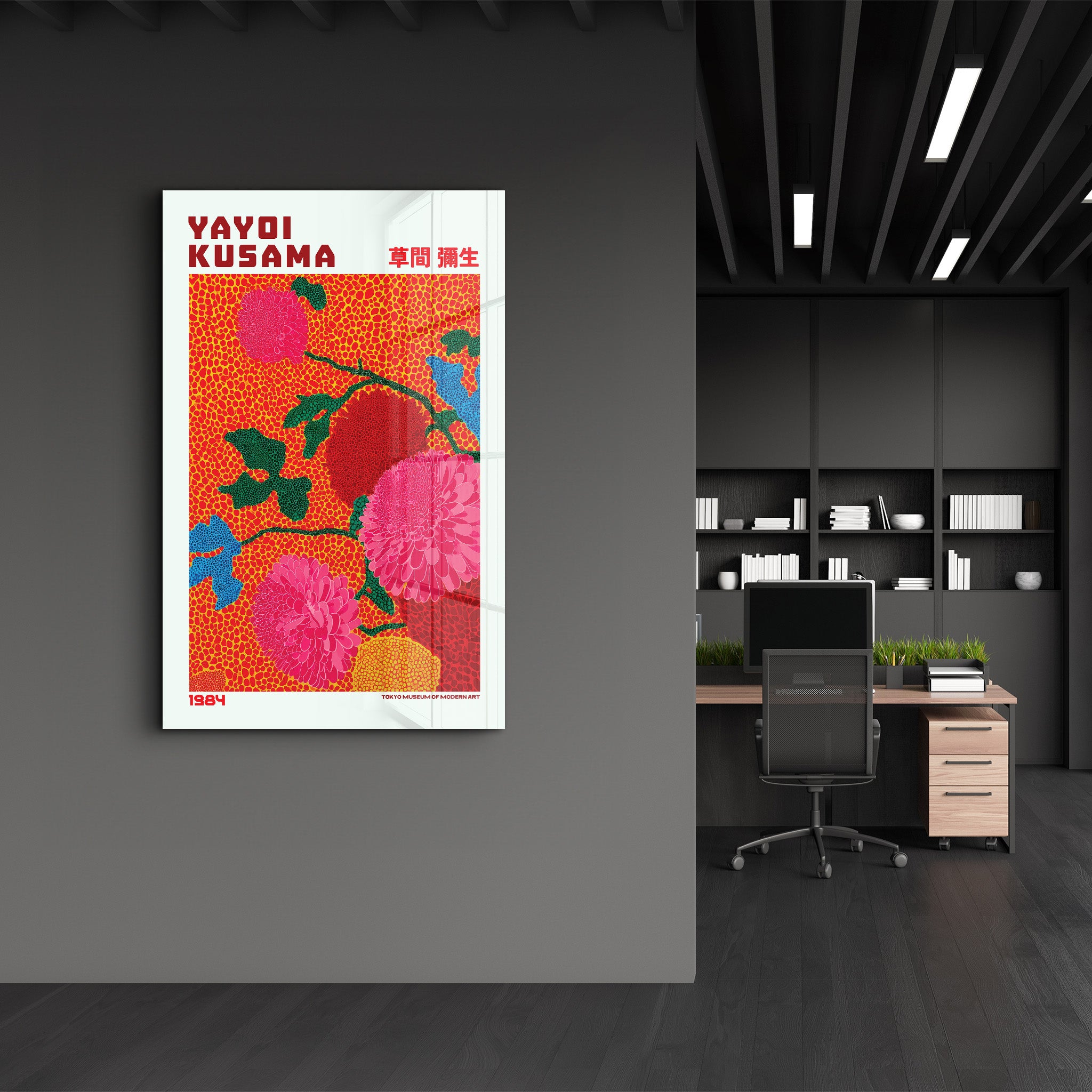 Yayoi Kusama – Scarlet Bloom Garden (1984) | Glass Wall Art