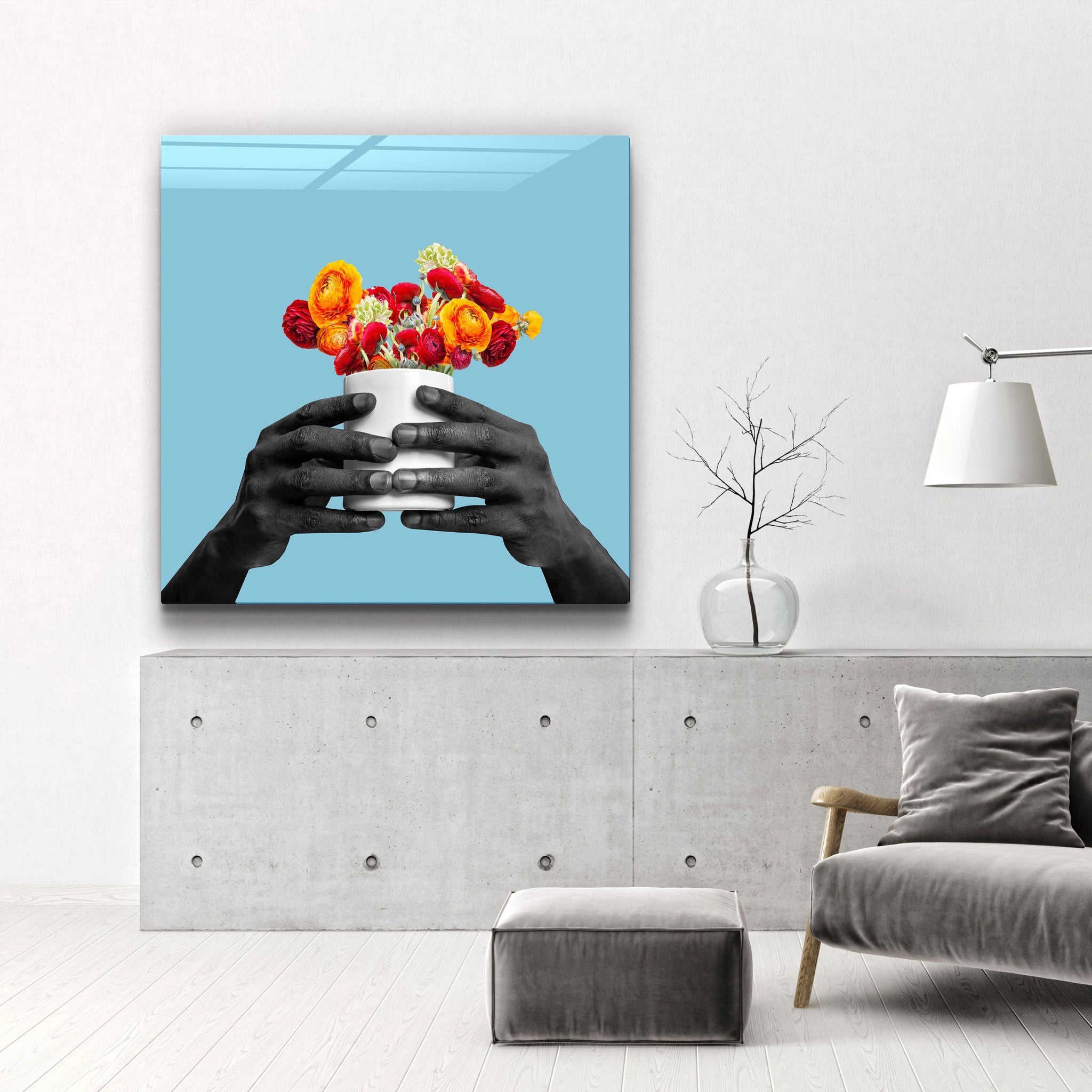 Created with ArtDesigna's premium printing techniques, every detail—from the delicate petals to the rugged lines of the hands—stays sharp and vibrant, ensuring this artwork remains an inspiring focal point.
