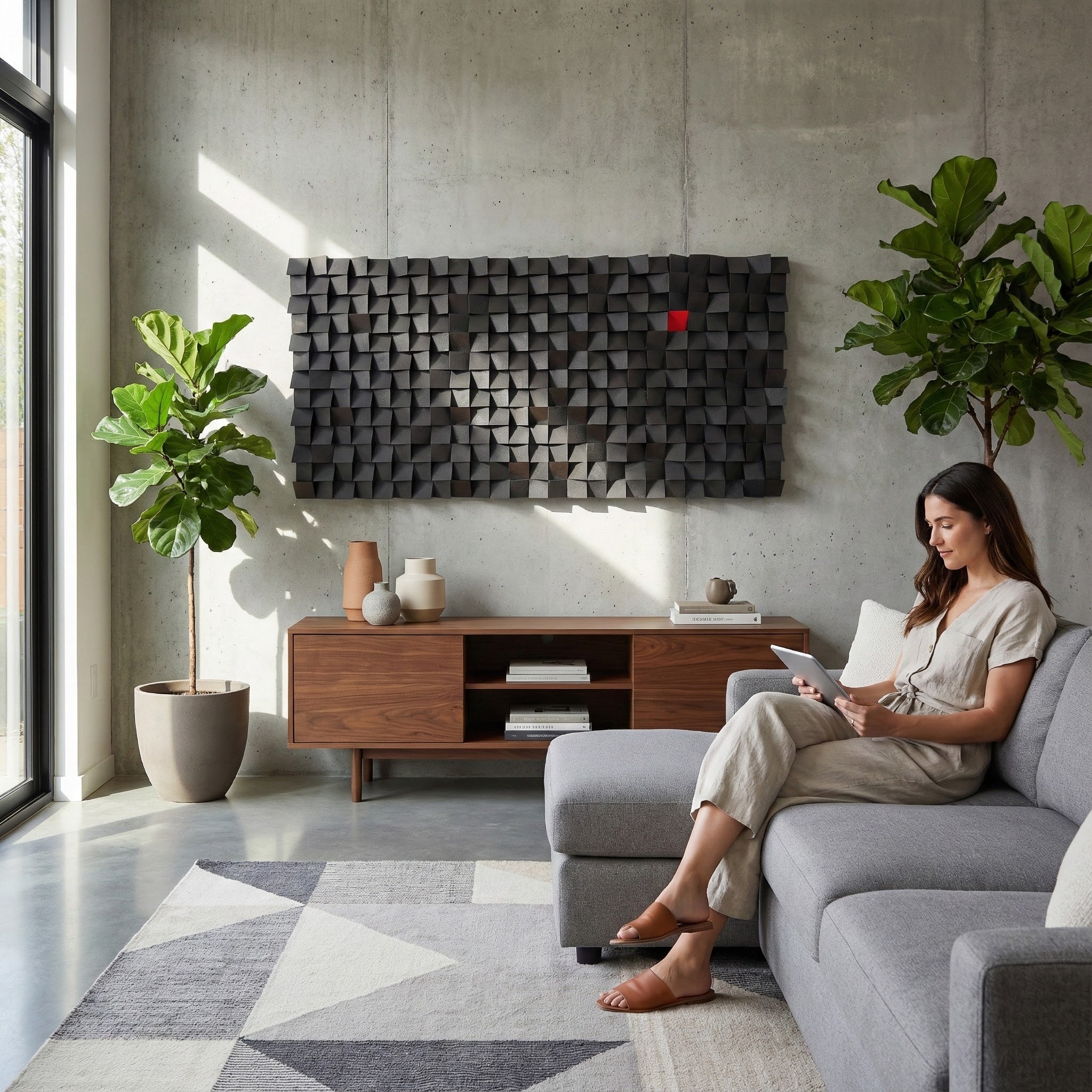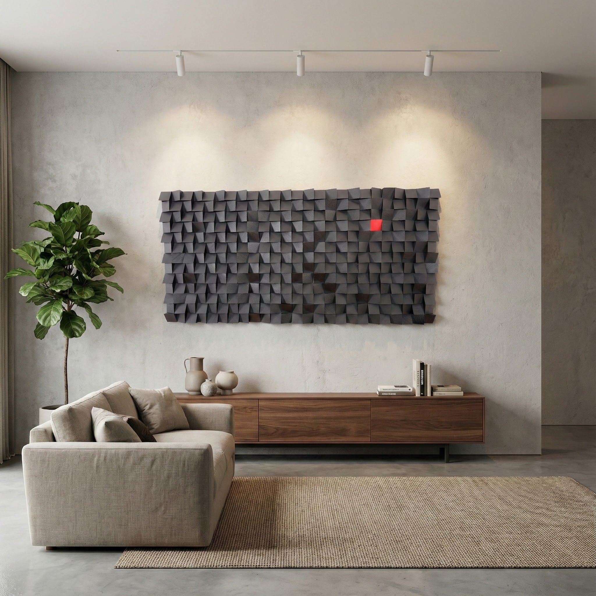 • In this remarkable rustic wooden wall decor series, our designers cut each small cube by hand and sand them individually. These pieces are painted separately with premium coloring to enhance their beauty and shield the wood at its finest. After painting and drying, the parts are attached to a wooden surface by a maximum-hold adhesive.